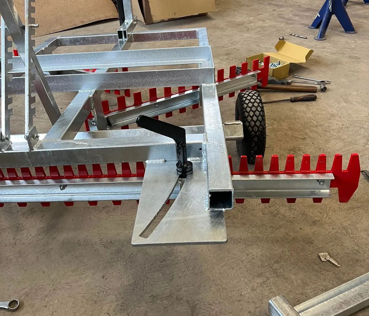 Dubbla rader harvpinnar, justerbara med tryckstång.